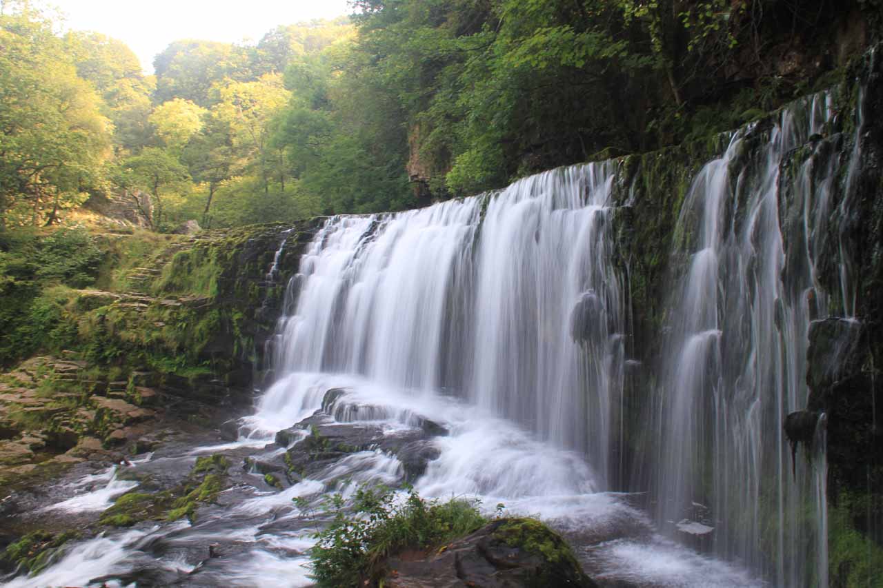 In my experience managing Welsh outdoor centres, the Brecon Beacons waterfall country around Ystradfellte attracts serious walkers seeking multiple cascades. The Four Waterfalls Walk covers 8 kilometres showcasing Sgwd Clun-Gwyn, Sgwd Isaf Clun-Gwyn, Sgwd y Pannwr, and Sgwd yr Eira where paths run behind falling water.